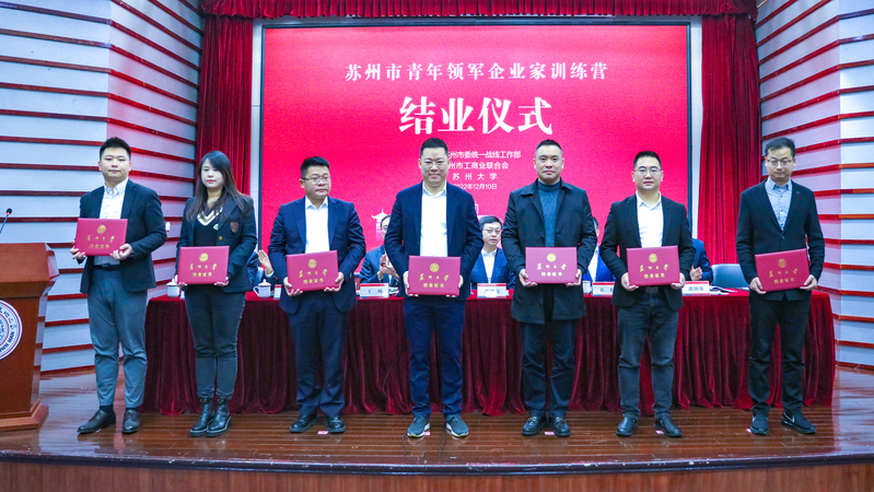 2022年12月10日,首届苏州市青年领军企业家训练营结业仪式在天赐庄校区学术报告厅举行。江苏省委常委、苏州市委书记曹路宝出席仪式并讲话,强调要深入学习贯彻党的二十大精神,全面贯彻习近平新时代中国特色社会主义思想,不断增创发展优势、营造最优环境,为企业扎根苏州更好发展开辟广阔天地,携手开创更加美好的未来。