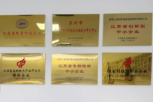 苏州工业园区捷泰包装材料有限公司成立于2011年。公司主要从事偏光片运输盒及相关PS/PP垫片的研发、生产与销售,为IT、TV等大型液晶面板配套的偏光片产品提供包装运输及周边产品技术解决方案。公司拥有完善ISO9001:2008质量管理体系,并通过ISO14001环境管理体系认证。同时,该公司被授予“江苏省民营科技企业”、“苏州市新型研发机构”、“江苏省创新型中小企业”、“江苏省高新技术产业开发区瞪羚企业”、“江苏省专精特新中小企业”以及“国家科技型中小企业”等称号。这些荣誉体现了公司在科技研发、创新能力、市场竞争力等方面的突出表现,以及在推动科技进步和产业升级中发挥的重要作用。