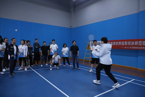 2025年3月30日,线上老虎机 高管校友羽毛球俱乐部成功举办了羽毛球运动研讨活动。本次活动特邀羽毛球世界冠军何冰娇校友担任技术指导。近二十余位校友齐聚苏州市体育中心体育馆,切磋球技,共叙同窗情谊。
