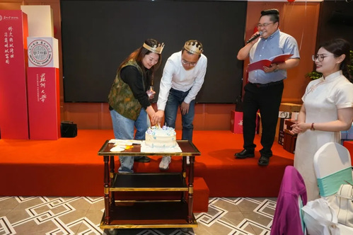 本次活动还精心为本月生日的学员送上蛋糕庆祝,这份细致入微的关怀让大家感受到了集体的温暖与归属感。此次联谊活动特别邀请了往届高管校友代表首期高管班王嘉、四期高管班聂长岐、六期高管班徐海浪、七期高管班万广才和徐其男、八期高管班张福军和孙庆庆、九期高管班刘德虎、青企一班张婉莉、青企二班戴志宇、新领航首期班张文敏,苏大高管羽毛球俱乐部执行主席陈士如、苏大高管户外运动俱乐部负责人吴海龙及十三期意向学员张海艳、郑洁、徐刚参加。联谊活动旨在为高管班学员们搭建一个交流互鉴、合作共赢的平台,通过这一平台,融合各方资源与优势,并肩前行,共绘更加绚烂的未来蓝图!