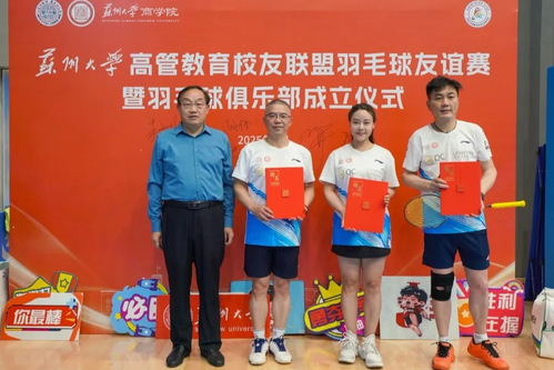 东校区体育馆内热潮涌动,高管教育校友联盟羽毛球友谊赛暨羽毛球俱乐部成立仪式在此盛大启幕。活动以“运动凝聚校友,拼搏共促发展”为主线,汇聚近百名高管校友及特邀嘉宾,通过竞技与交流展现苏大人团结奋进的精神底蕴,开启校友联络新篇章,共同庆祝五四青年节。