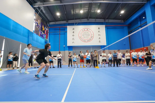 在何冰娇与学院本科生代表、高管校友代表、学院教师代表分别联袂呈现了三场精彩的表演赛中,高水准的扣杀与防守赢得现场阵阵喝彩。表演赛余温未散,公开组与竞赛组角逐正式打响。赛场上,既有“凌空跃起”的暴力扣杀,也有“四两拨千斤”的精妙挡网;既有“逆风翻盘”的热血时刻,亦有“网前握手”的温情瞬间,充分体现了“友谊第一,比赛第二”的体育精神。