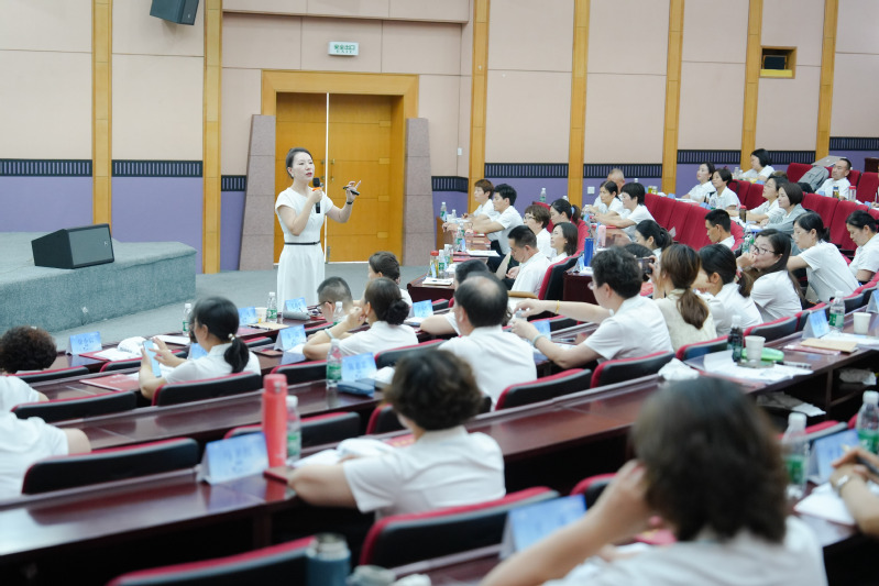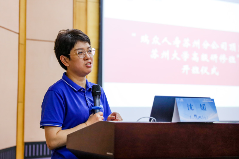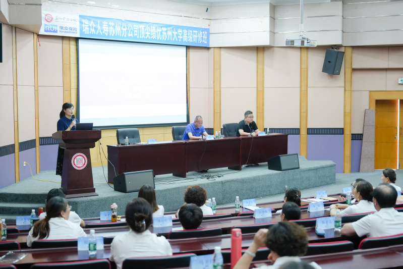瑞众人寿苏州分公司党委委员、营销负责人沈媛发表开班讲话。她对在座的各位精英骨干能在百忙之中参与培训表示真挚的感谢,希望大家能够全身心地投入到此次培训中,将过往的销售经验与课程讲授的知识相结合,深度思考,深刻领会。最后,她预祝此次研修班圆满举办。