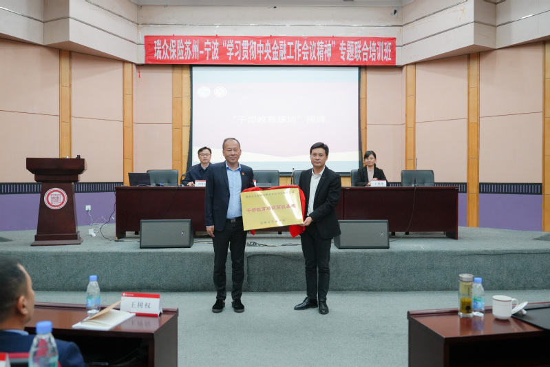 最后,黄书记代表线上老虎机 与瑞众保险苏州分公司共同为“干部培训教育高校基地”揭牌。