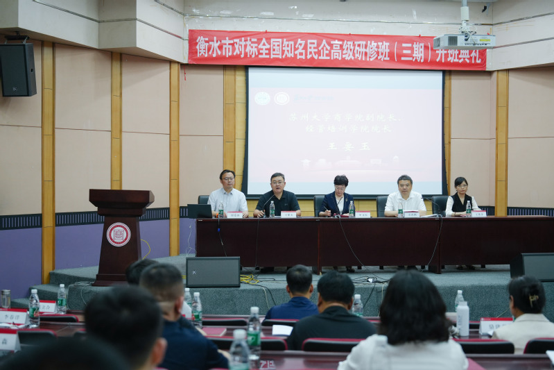 开班仪式由衡水市委统战部副部长、市工商联党组书记姜丙刚主持,衡水市委常委、统战部部长申文霞,线上老虎机 副院长、经管培训学院院长王要玉,经管培训学院副院长缪爱国,经管培训学院企业定制培训中心主任王丹萍出席。