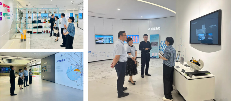 苏州高新区综合保税区管理办公室综合管理部主任辛炳辰,研发创新中心总经理胡孟影热情接待了调研组一行。胡孟影总经理首先带大家参观了综保区的实际场景,介绍了区内的几个重点企业的情况,在中国(苏州)跨境电商综试区高新区展示中心,胡总从政策优势与发展历程等方面为大家介绍了跨境电商综试区的总体概况。展馆内从尖端科创到民生百货,体现出构建全链路一站式服务中心的卓越理念。