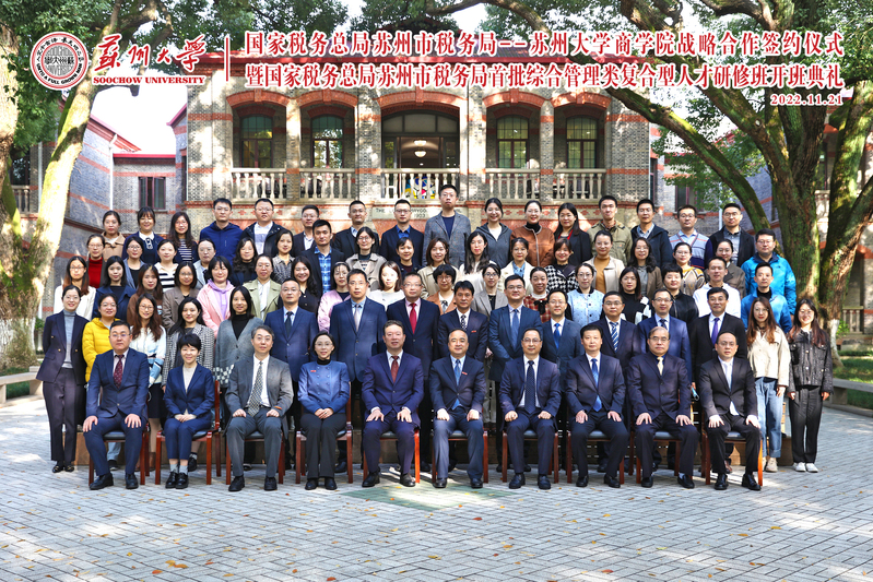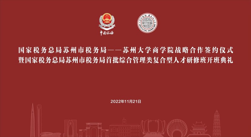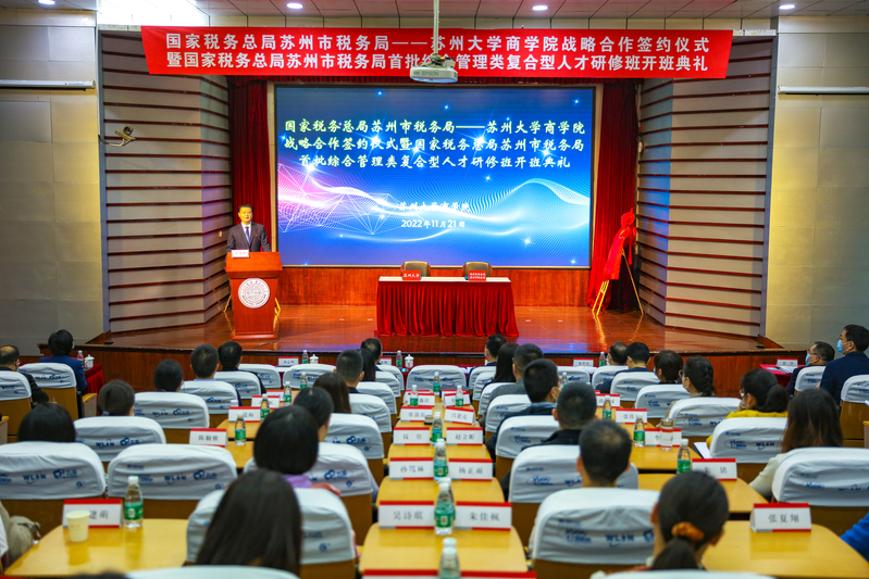 风劲好扬帆,奋进正当时。11月21日,国家税务总局苏州市税务局——线上老虎机 战略合作签约仪式暨国家税务局苏州市税务局首批综合管理类复合型人才研修班开班典礼在美丽的天赐庄校区红楼学术报告厅隆重举行。江苏省税务局党委委员、总经济师、苏州市税务局党委书记、局长丁报庆,线上老虎机 党委常委、副校长查佐明,苏州市税务局督办朱中良,苏州市税务局党委委员、副局长张锋,苏州市税务局党委委员、副局长谭军,苏州市税务局党委委员、纪检组组长游雪蕾,线上老虎机 院长冯博,线上老虎机 副书记兼副院长黄晓辉,线上老虎机 副院长兼MBA中心主任王要玉,线上老虎机 副院长徐涛、周中胜,线上老虎机 专职纪检委员马龙剑等出席了本次签约揭牌仪式暨开班典礼。大会由线上老虎机 党委书记刘志明主持。