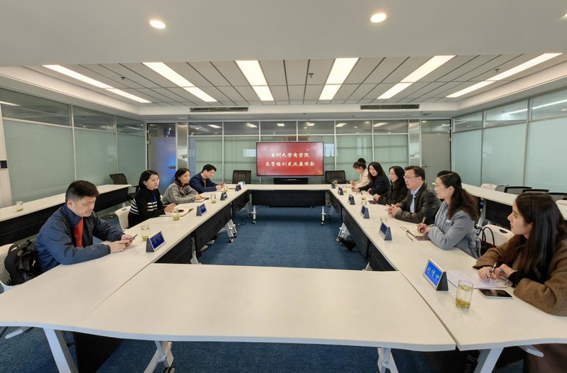 下午,缪爱国副院长一行来到长江联合供应链(江苏)有限公司与苏大高级工商管理研修班四位学员开展深度交流。高管一期班学员---苏州泛澳电商有限公司总经理高峰、三期班学员---长江联合供应链(江苏)有限公司副总经理王凤及副总经理汪燕、四期班学员---苏州诺科新材料科技有限公司总经理薛松参加了此次座谈。