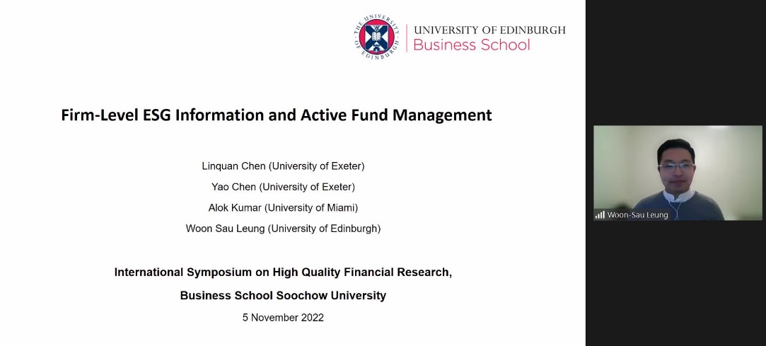 2022年11月5日,线上老虎机 高质量金融研究国际研讨会成功举办。本期研讨会涉及多个国际热点话题,综合讨论从环境、社会和公司治理三个维度评估企业经营的可持续性与对社会价值观念的影响。本次会议由线上老虎机 与江苏现代金融研究基地联合承办。会议由线上老虎机 方一蔚教授主持。