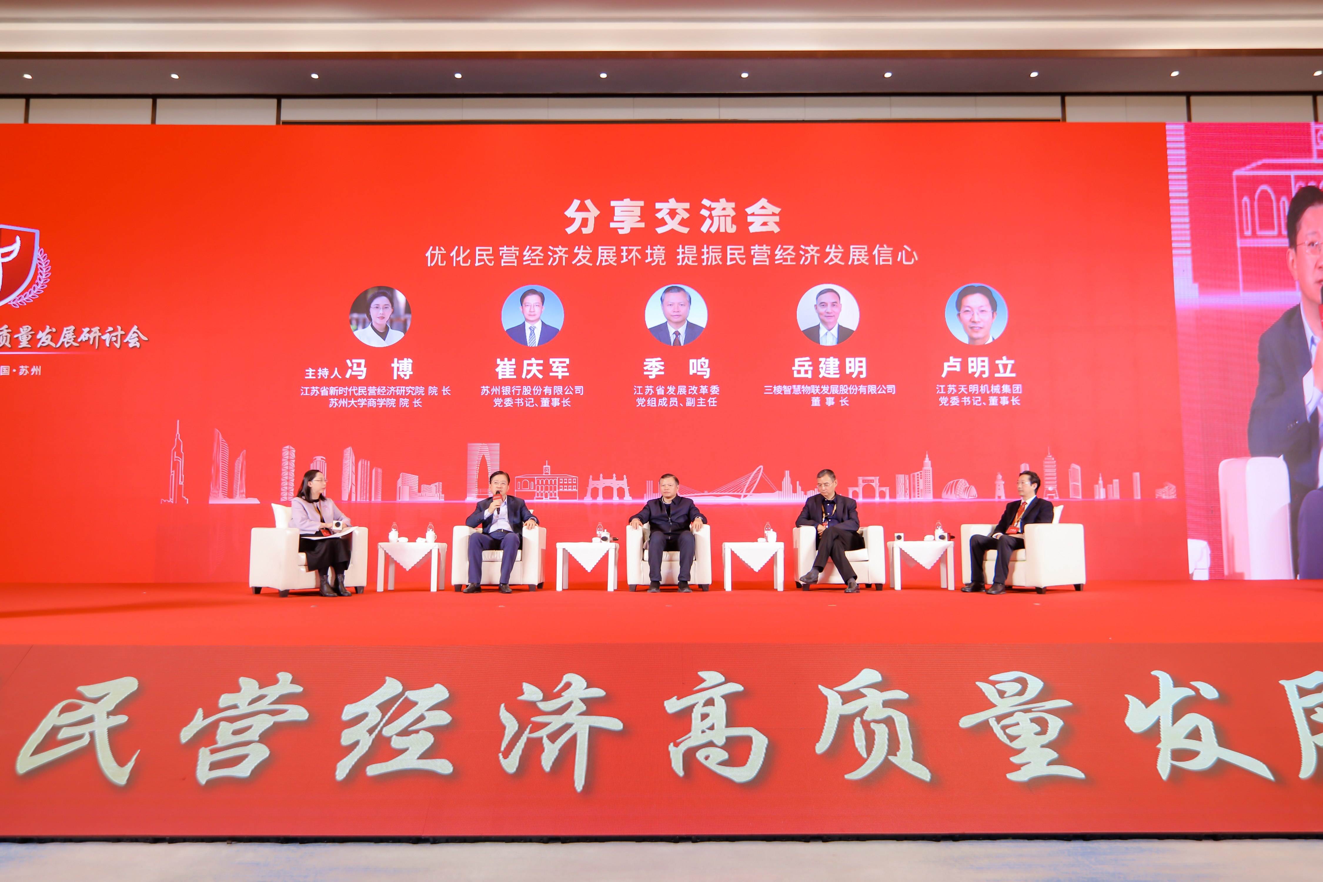 在分享交流会上,江苏省新时代民营经济研究院院长、我校线上老虎机 院长冯博,省发改委副主任季鸣,苏州银行党委书记、董事长崔庆军,三棱智慧物联发展股份有限公司董事长兼首席科学家岳建明,江苏天明机械集团党委书记、董事长卢明立,围绕投资环境、融资环境、创新环境、舆论环境等话题,深入探讨江苏民营企业的高质量发展之路。