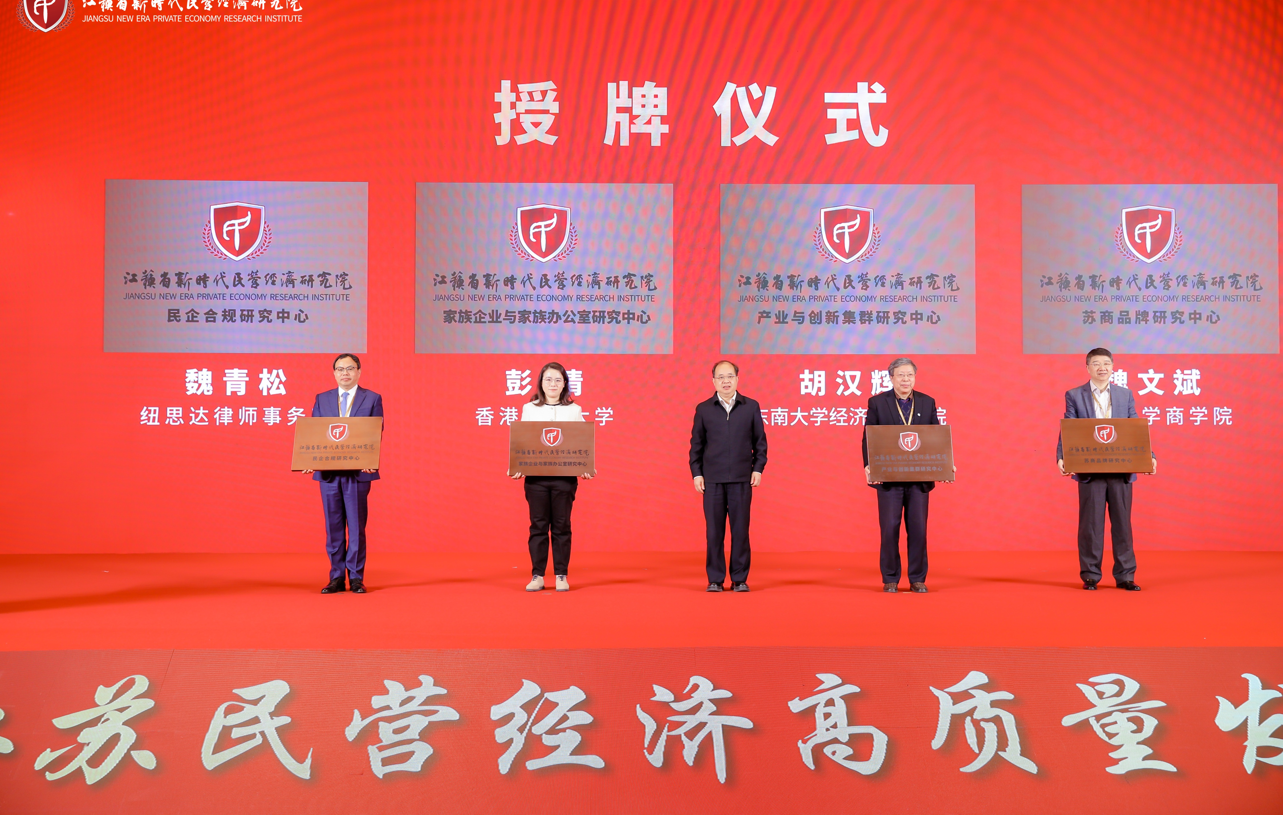会上,江苏省新时代民营经济研究院举行了新增内设机构授牌仪式及特邀顾问、特聘研究员聘任仪式。省委统战部常务副部长顾万峰为江苏省新时代民营经济研究院新增内设机构授牌。